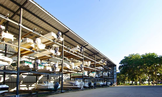 200 spaces for boats from 16 feet to 27 feet, up to 10,000 lbs.
